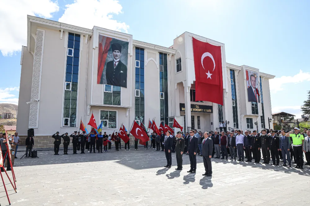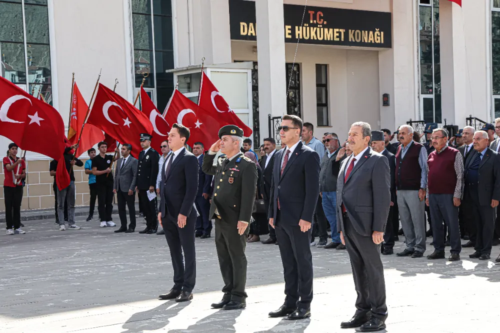 Kaymakamlık Konağı önündeki program, Atatürk Anıtı’na çelenk sunumunun ardından saygı duruşunda bulunulması ve İstiklal Marşı’nın okunmasıyla başladı.
