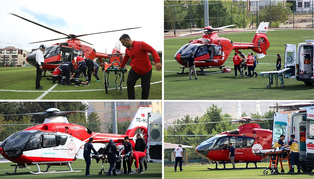 İlçemizde, 2025 yılı boyunca acil sağlık hizmetleri kapsamında Sağlık Bakanlığına bağlı helikopter ambulanslarla 63 hasta tam teşekküllü hastanelere sevk edildi.