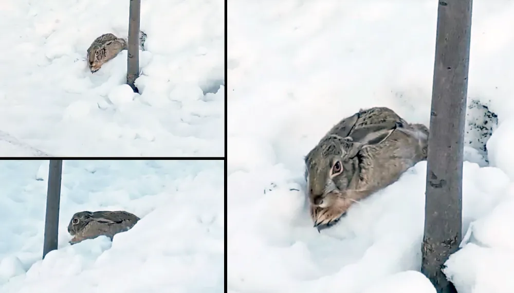 Geçtiğimiz günlerde etkisini artıran soğuk havalarda doğal yaşam alanlarında besin bulamayan yabani tavşan, yerleşim alanlarına indi. Bir okulun bahçesine giren tavşan, bir süre kar yığınlarının arkasına saklanarak kendini gizlemeye çalıştı.
