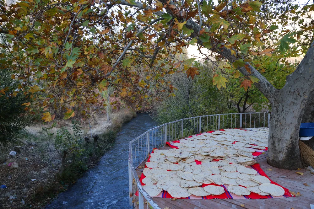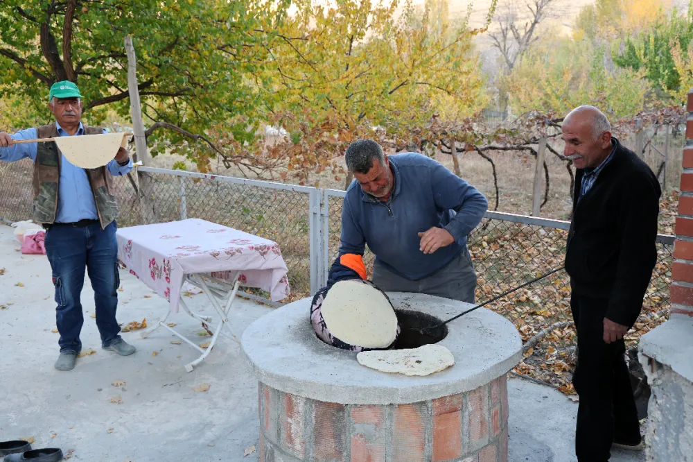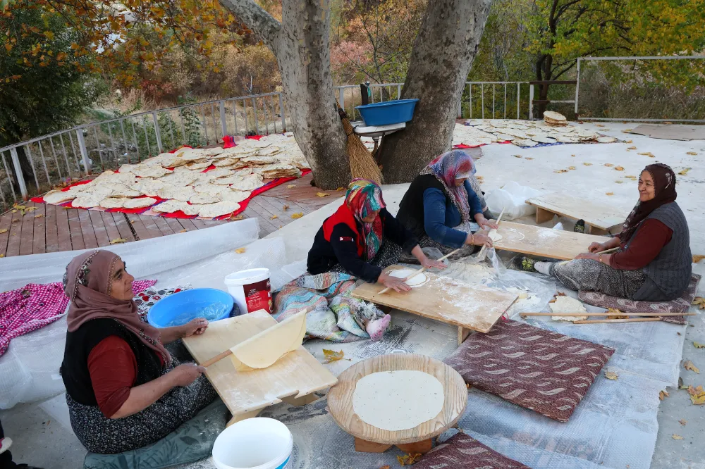 Mahalle sakinleri, geleneksel yöntemlerle hazırladıkları tandır ekmeklerini pişirerek kışa hazırlanıyor. Sabahın erken saatlerinde bir araya gelen kadınlar, imece usulüyle yoğurdukları hamurları tandırda pişirip uzun süre bozulmadan saklanabilen köy ekmeklerine dönüştürüyor.