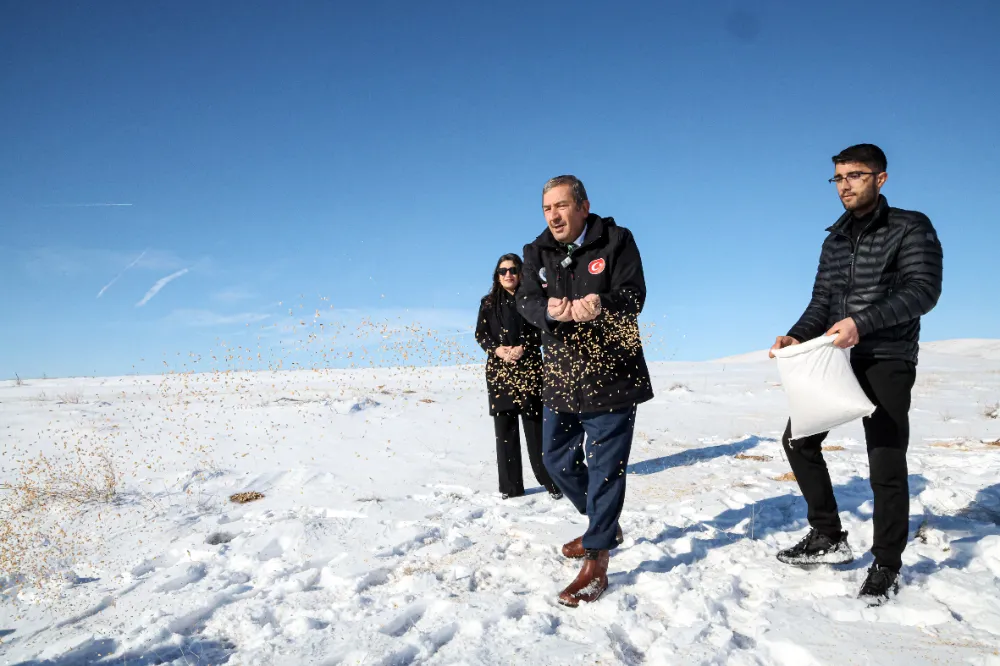 Yemleme çalışması sırasında açıklamada bulunan Başkan Bozkurt, Hz. Ömer’in merhamet anlayışına atıfta bulunarak, “Dağlara buğdaylar serpin; ‘Müslüman ülkede kuşlar aç kaldı’ demesinler.” sözünü rehber edindiklerini ifade etti.