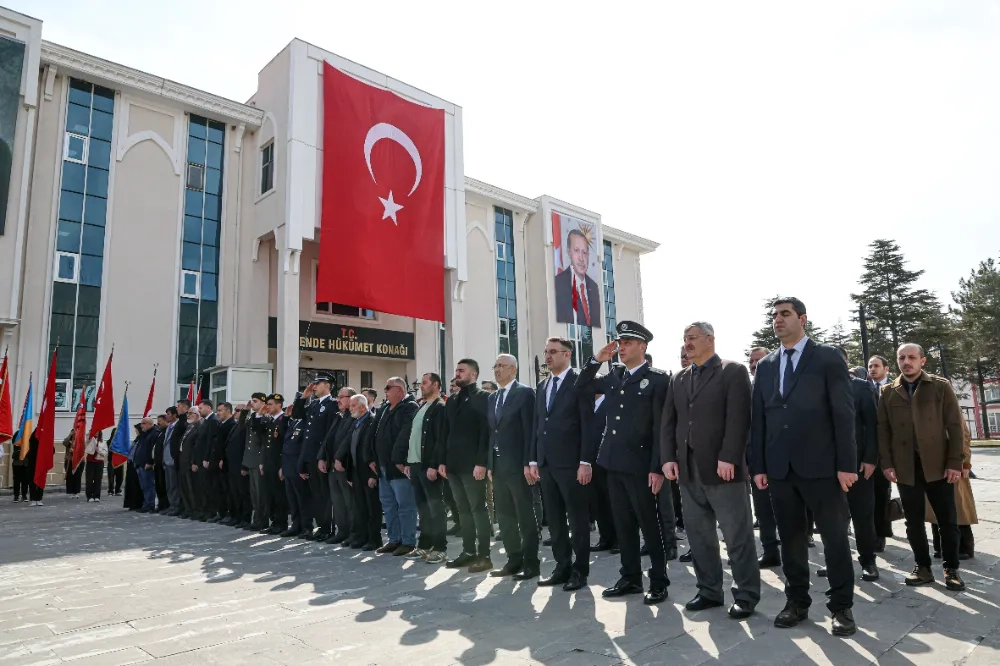 İlçemizdeki ilk törende, Hükümet Konağı önündeki Atatürk Anıtı'na çelenk sunuldu. Daha sonra Hasan Gazi Türbesi ve Şehitler Abidesi'nde dua merasimi düzenlendi. İlçe Müftüsü Sinan Şen tarafından yapılan duanın ardından abide gezildi.
