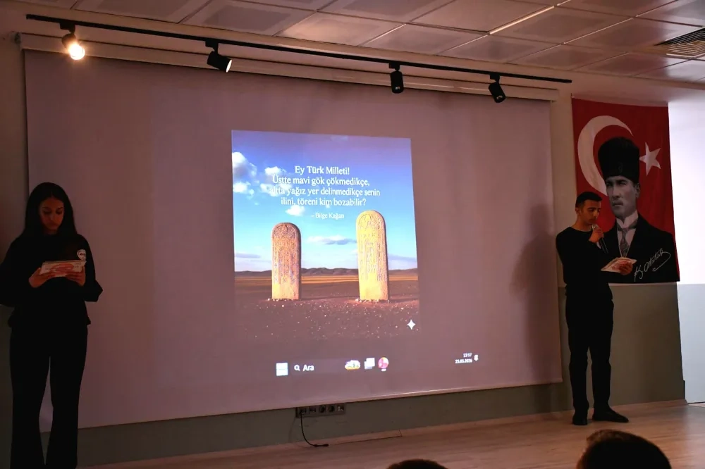 Program, saygı duruşu ve İstiklal Marşı’nın ardından öğrencilerin hazırladığı kültürel sunumlarla başladı. Türk tarihine damga vuran olayların ve Ergenekon’dan çıkışı simgeleyen görsellerin yer aldığı oratoryo ve şiir dinletileri büyük beğeni topladı. Özellikle geleneksel ve tarihi kıyafetler giyen öğrencilerin performansı, izleyicilere adeta bir tarih şöleni sundu.