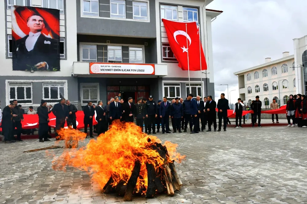 Malatya’nın Darende ilçesinde, baharın müjdecisi ve Türk dünyasının kadim bayramı Nevruz, Mehmet Emin Ilıcak Fen Lisesi’nde düzenlenen görkemli bir programla kutlandı. Kaymakam Şeref Gülyer’in örs başında demir dövdüğü kutlamalarda, birlik ve beraberlik mesajları verildi.
