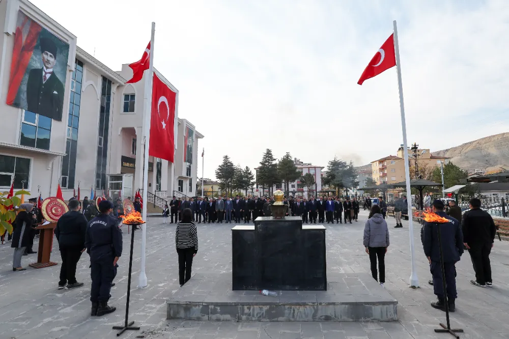 Hükümet Konağı önünde Atatürk Anıtı’na çelenk sunumu, saygı duruşunda bulunulması ve İstiklal Marşı’nın okunması ile başlayan töreninin ardından ikinci tören İlçe Milli Eğitim Müdürlüğü Konferans salonunda düzenlendi.