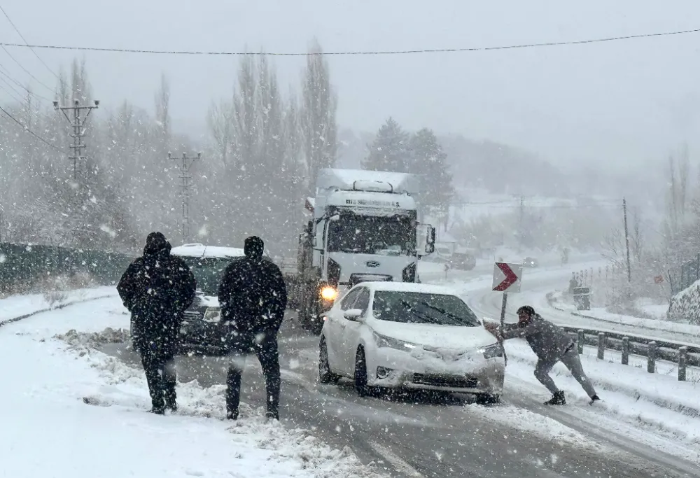Öte yandan, yoğun kar yağışı nedeniyle bazı araçların yolda mahsur kaldığı, ekiplerin bu araçların kurtarılması ve trafiğin yeniden akıcı hale getirilmesi için kurtarma çalışmalarını sürdürdüğü belirtildi.