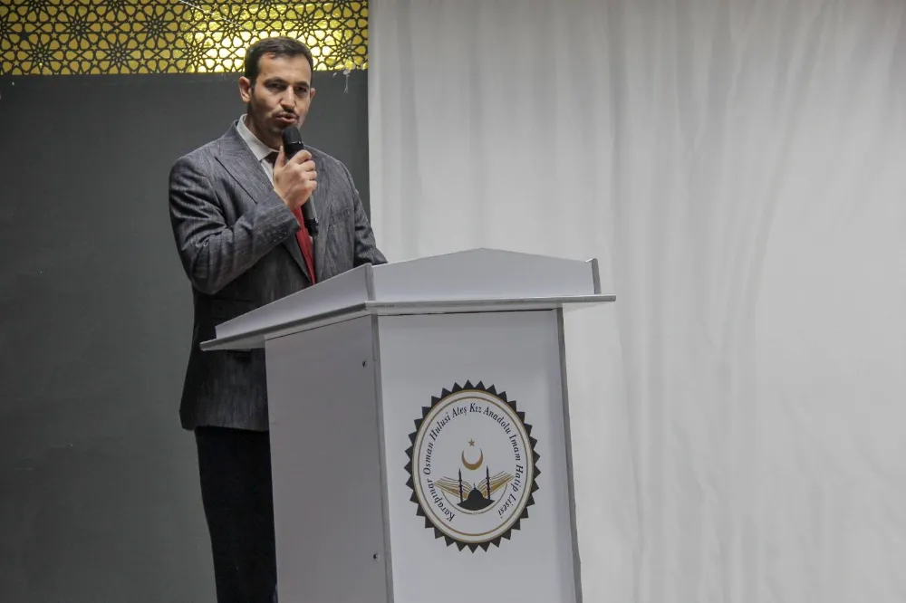 Konya-Karapınar Osman Hulusi Ateş Kız Anadolu İmam Hatip Lisesi konferans salonunda gerçekleştirilen programa, Karapınar Milli Eğitim Müdürü Hulusi Sonkaya, Selçuk Üniversitesi İlahiyat Fakültesi Öğretim Üyesi Dr. Sami Bayrakcı, Dernek Başkanı Dr. Hamit Demir ve dernek yönetimi, okul yöneticileri, öğretmenler ve öğrenciler katıldı.