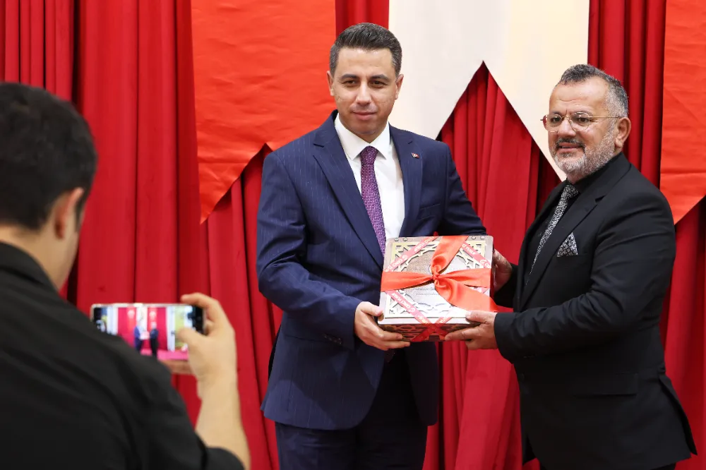 Konferansın sonunda ilçe Kaymakamı Şeref Gülyer, katkılarından dolayı Prof. Dr. Kadir Özköse’ye hediye takdim etti.